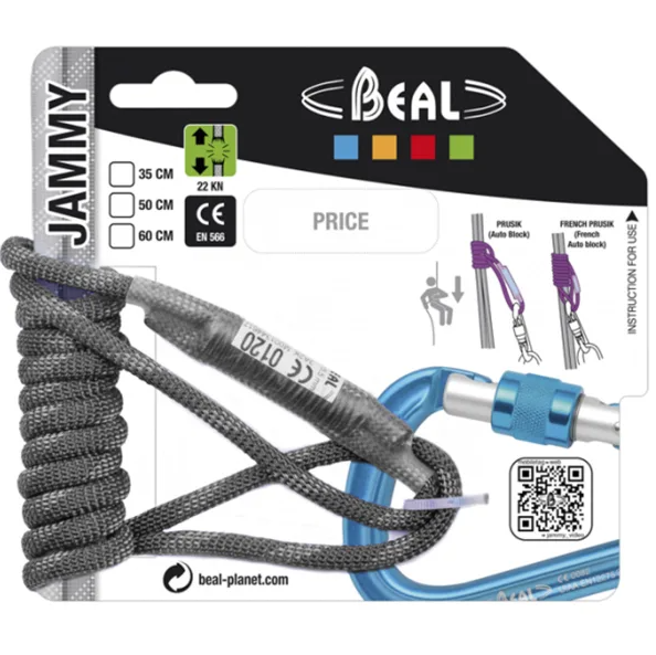 La Beal JAMMY 50CM es una anilla de escalada que puede utilizarse para diversos fines. Fabricado en cuerda de aramida de 5,5 mm con una funda de poliamida, puede utilizarse como dispositivo de autobloqueo en todos los diámetros de cuerda.